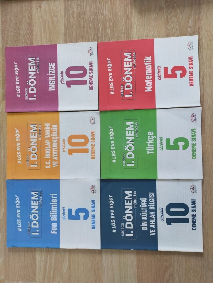 İngilizce, Matematik, Türkçe, Fen Bilimleri ve Din Kültürü için 5 ve 10 deneme sınavı içeren ilk dönem soru seti. ciddi alıcılar için pazarlık yapılır