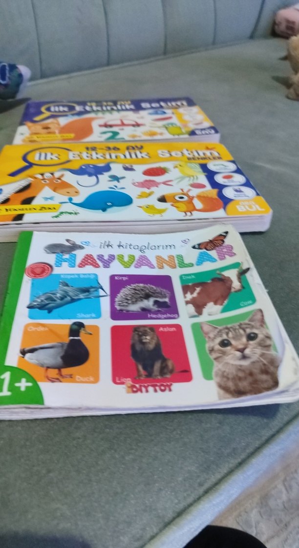 1 yaş ve üzeri çocuklar için hayvan resimleri ve isimleri içeren "İlk Kitaplar Hayvanlar" ile birlikte etkinlik seti kitapları.