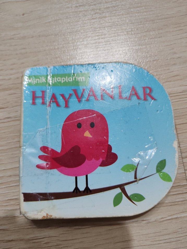 Renkli hayvan resimleriyle çocuklar için hazırlanmış karton kitap. Mini bebek el kitabı