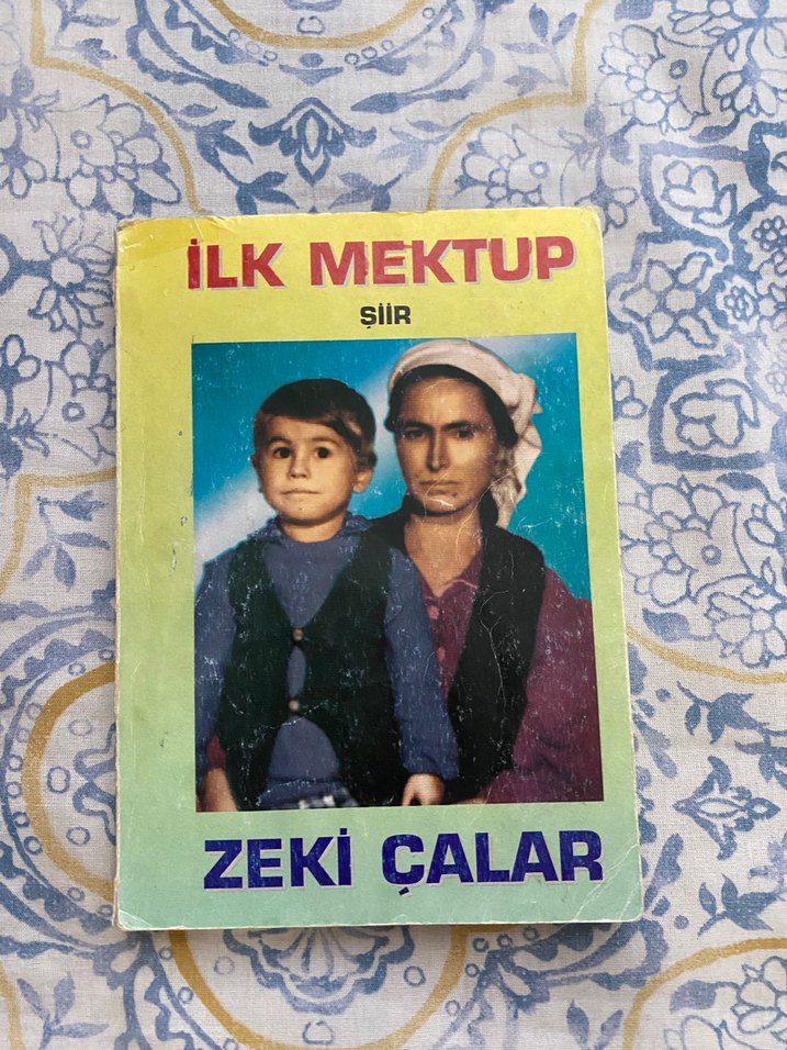 "İlk Mektup" şiir kitabı, Zeki Çalar imzasıyla. Kapakta bir kadın ve çocuk fotoğrafı yer alıyor. Duygusal temalar işlenmiş.