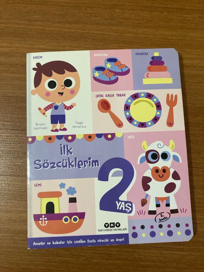 2 yaş çocuklar için temel sözcükler ve renkli çizimlerle dolu bir kitap. Kusuru yok