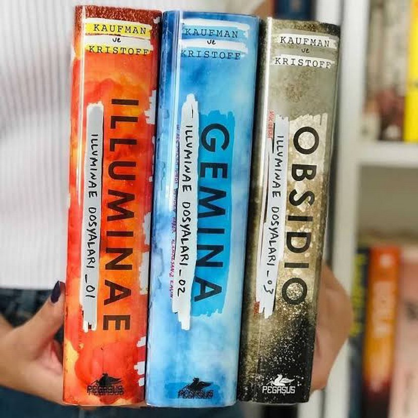 Kaufman ve Kristoff'un Illuminae Dosyaları serisinden Illuminae, Gemina ve Obsidio adlı üç kitaplık set.