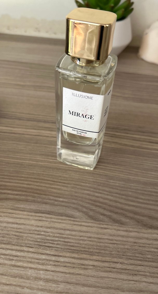 Illusione Mirage, altın kapaklı ve şeffaf cam şişede 50 ml kadın parfümüdür. Çok az kullandım fotoda da görebilirsiniz kokusu bana hitap etmediği için satıyorum.