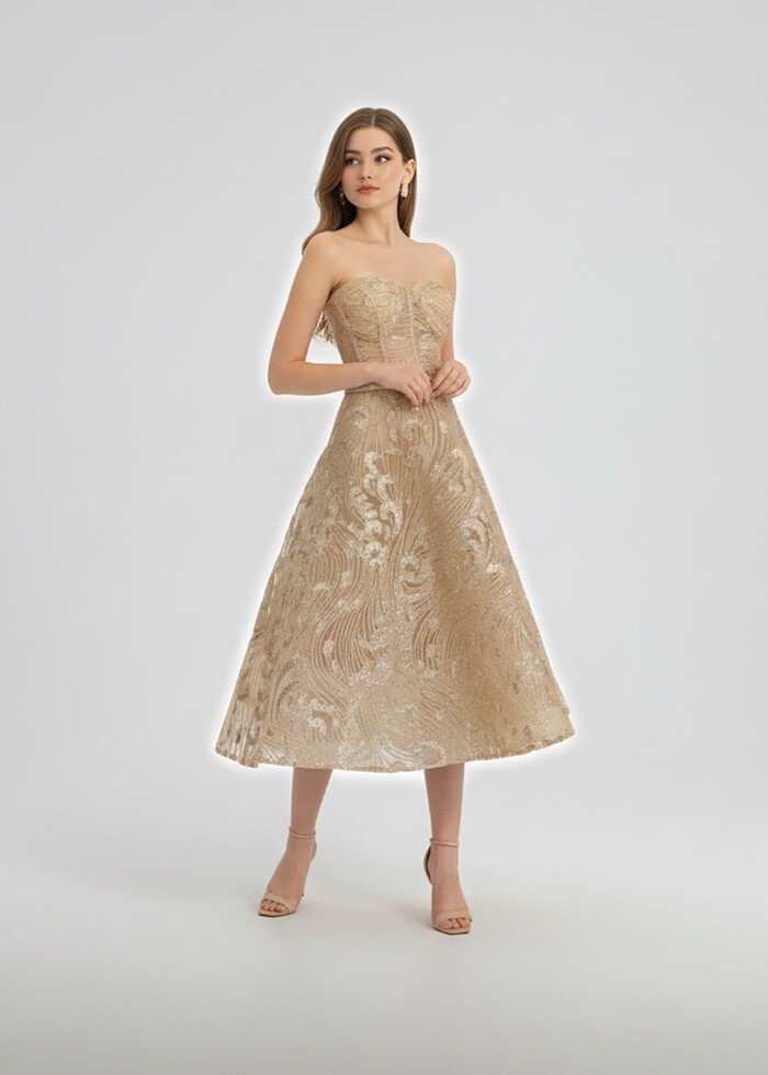 Hiç kullanılmamıştır. 40 beden için uygundur. Elbise sert bir kumaşa sahiptir, simlidir.