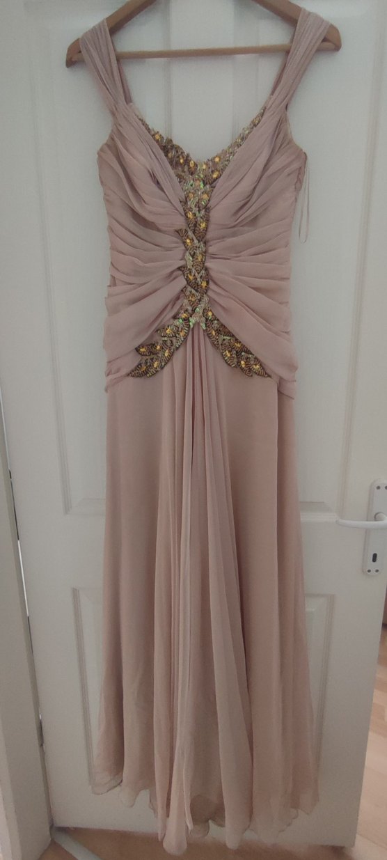 İlmio marka 38 beden Pudra Drapeli İşlemeli Uzun Abiye Elbise