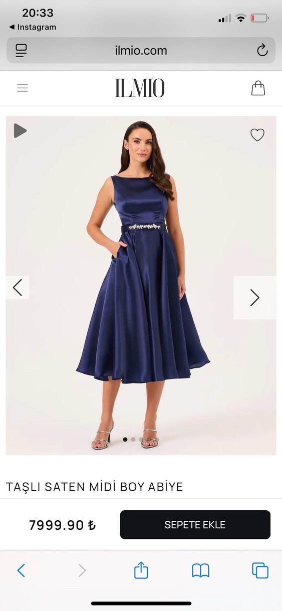 İlmio marka sezon ürünüdür. Parlak saten kumaştan, taşlı kemerli, kolsuz, kayık yaka midi boy lacivert abiye elbise. Düzenli kesim, modern klasik tarzda, düğünler için uygun. ✨ Sadece bir kere kullanıldı. Tertemiz kendi askısı ve kılıfıyla göndereceğim.