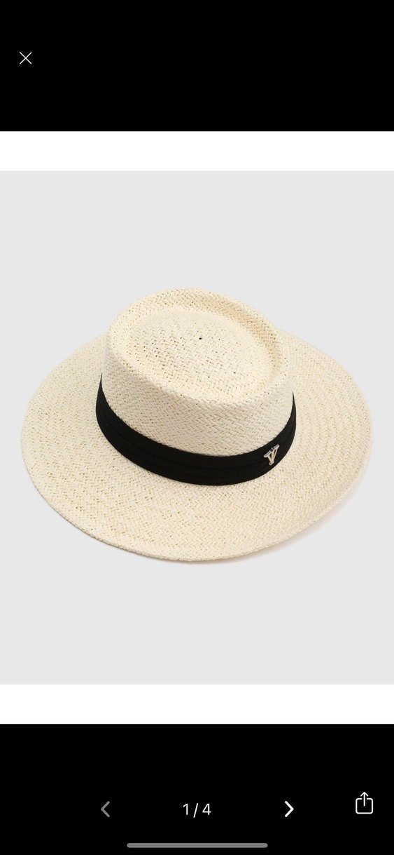 Sentetik kumaştan yapılmış, siyah şeritli açık beyaz bohem şapka. Klasik ve zahmetsiz şıklık için ideal, Paris tarzına uygun.