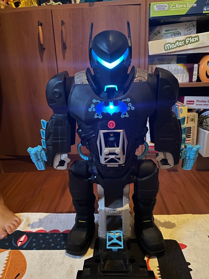 ışıklı bir kontrol paneli, birden fazla mermi fırlatıcı ve Gotham City'nin Süper Kötülerini kilitlemek için bir hapishane hücresi bulunur. "Uçuş" moduna geçmek için Güç Pedi'ni çevirin, ardından kolları öne getirmek için tetiği sıkın ve harekete geçmek için için yuvarlanın. Batman'i kokpite yerleştirin ve figürün göğsünün aydınlandığını görmek için düğmeye basın. Ürün ölçüsü: 41 x 12,6 x 39,6 cm.