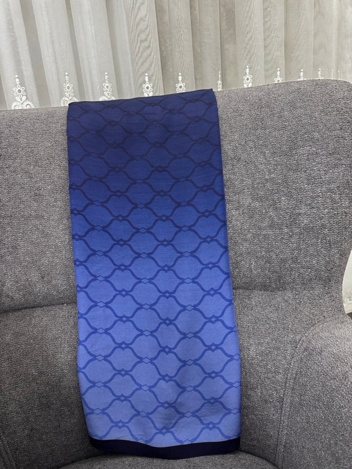 İmannoor lacivert kafes degrade desen floş viskon şal