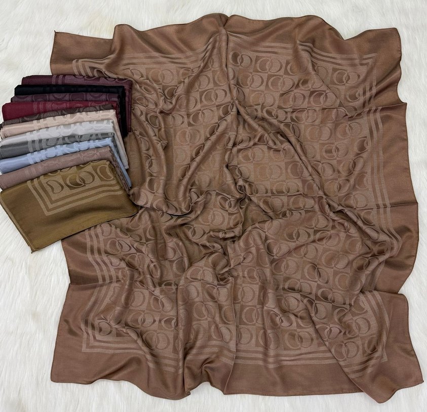 Kadınlar için drapeli tasarıma sahip, parlak kahverengi sentetik kumaştan yapılmış, rahat ve çağdaş stil sunan eşarp pamuk elyaf kumaştır