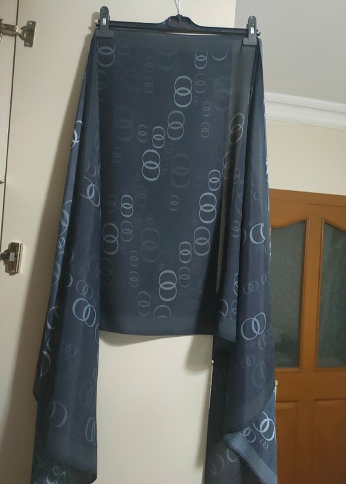 Siyah üzeri gri yüzük desen şal