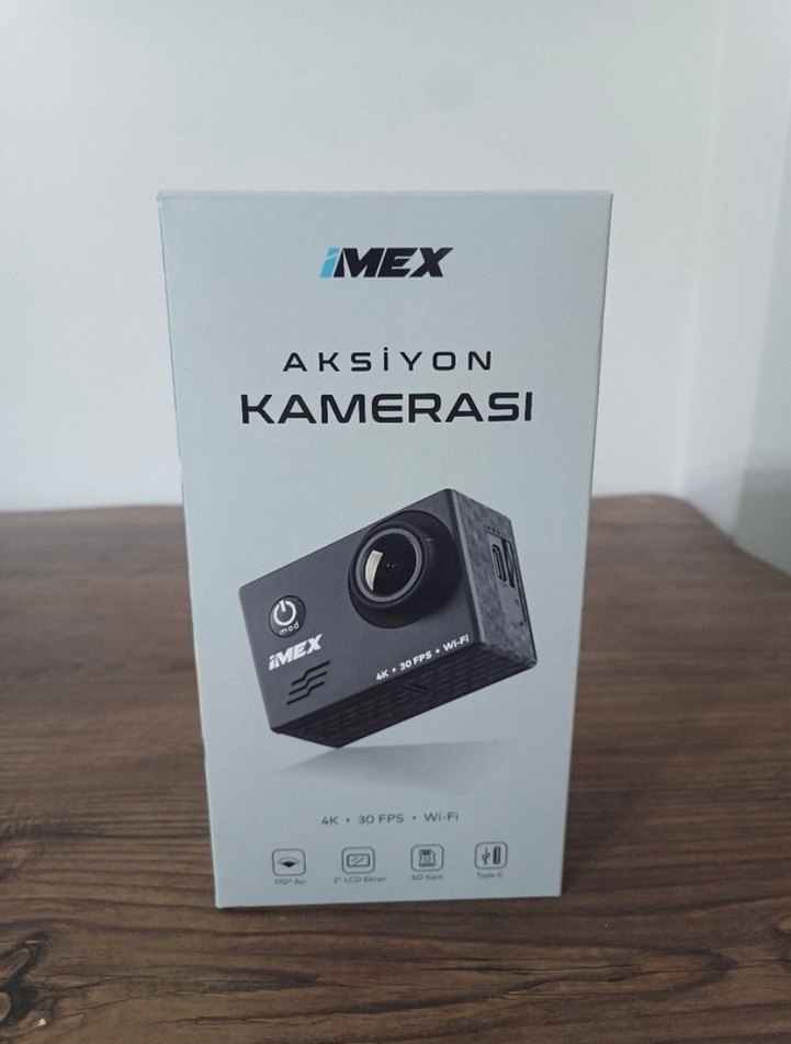 iMEX siyah aksiyon kamerası 4K çözünürlük ve Wi-Fi bağlantısı sunar. 30 FPS ile akıcı video kaydı sağlar.