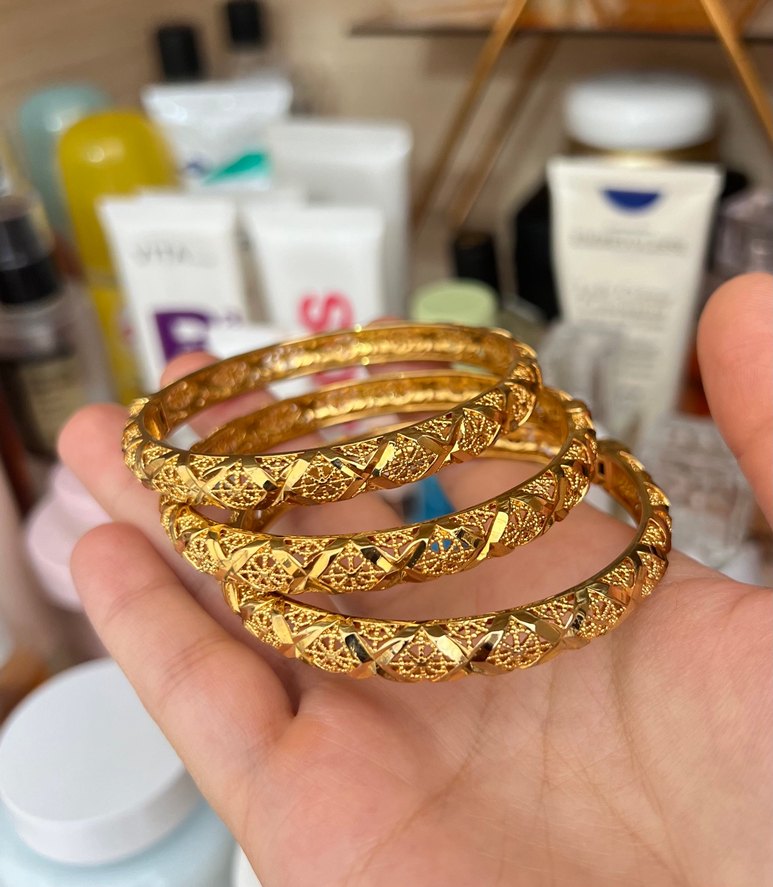 Altın renginde, hint model 3 adet kelepçe yapıya sahip kadın bileklik, düğünler ve minimalist tarz için uygundur. Renk garantili Dubai ürünü altından farksız mükemmel gösterişli