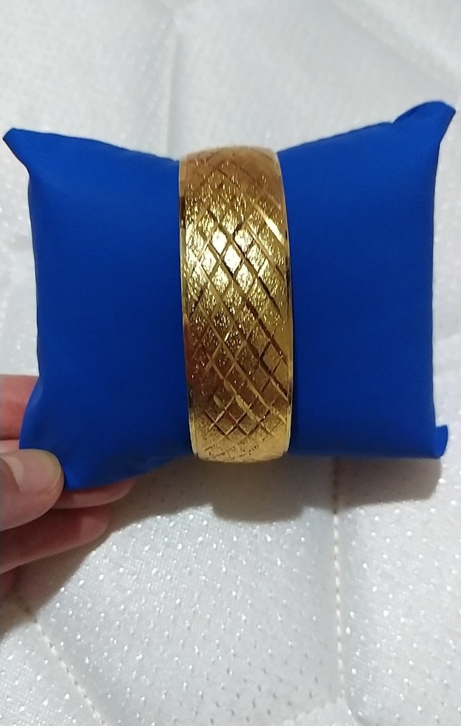 Parlak altın renkli, esnek vintage tarzı kadın bileklik. baklava desenli düğünler için uygundur. eni 2cm çapı 6.7cm iki defa kullanıldı