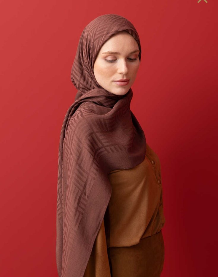 , koyu kahverengi kadın şalı. İpeksi kumaştan üretilmiş, sade ve bohem tarzlara uygundur.