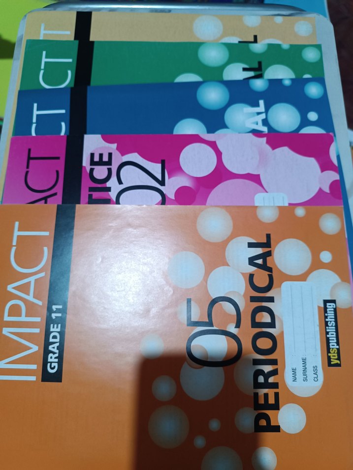 IMPACT 11. sınıf için farklı konuları içeren renkli kapaklı dönemlik sınav kitapları seti.
