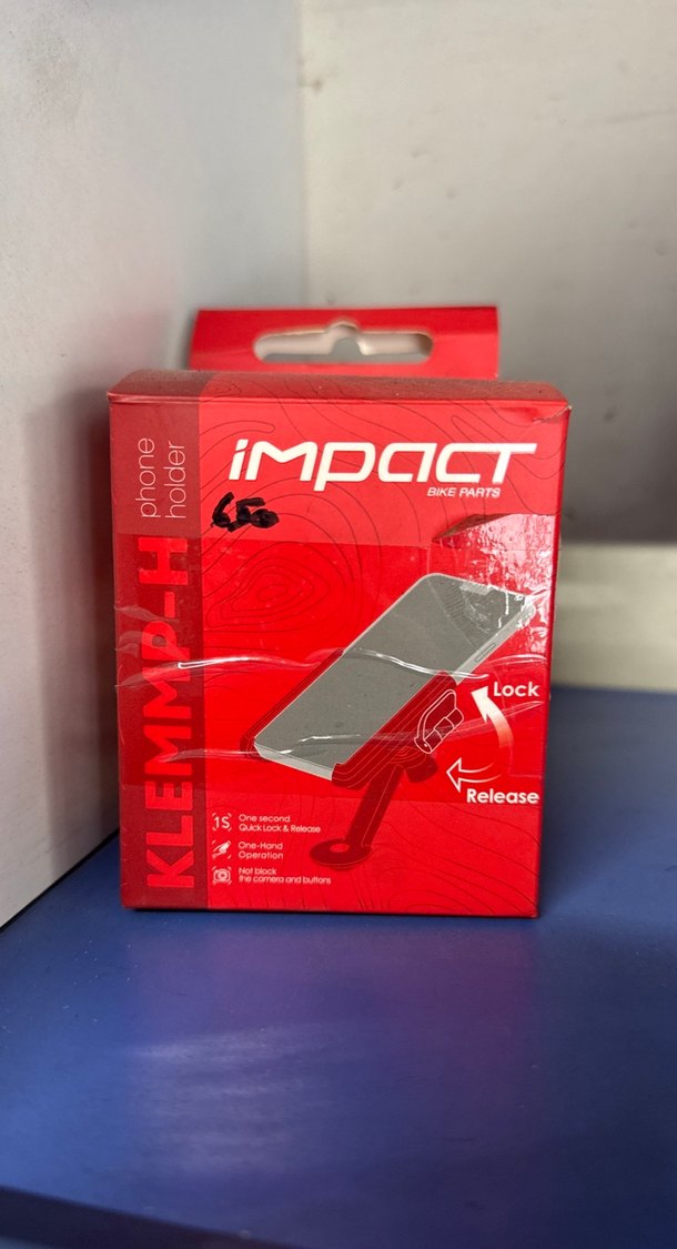 Impact kırmızı telefon tutucu, hızlı kilitleme ve serbest bırakma mekanizmasına sahiptir. Gri kilit kısmı güvenli tutuş ve tek elle kullanım sağlar.