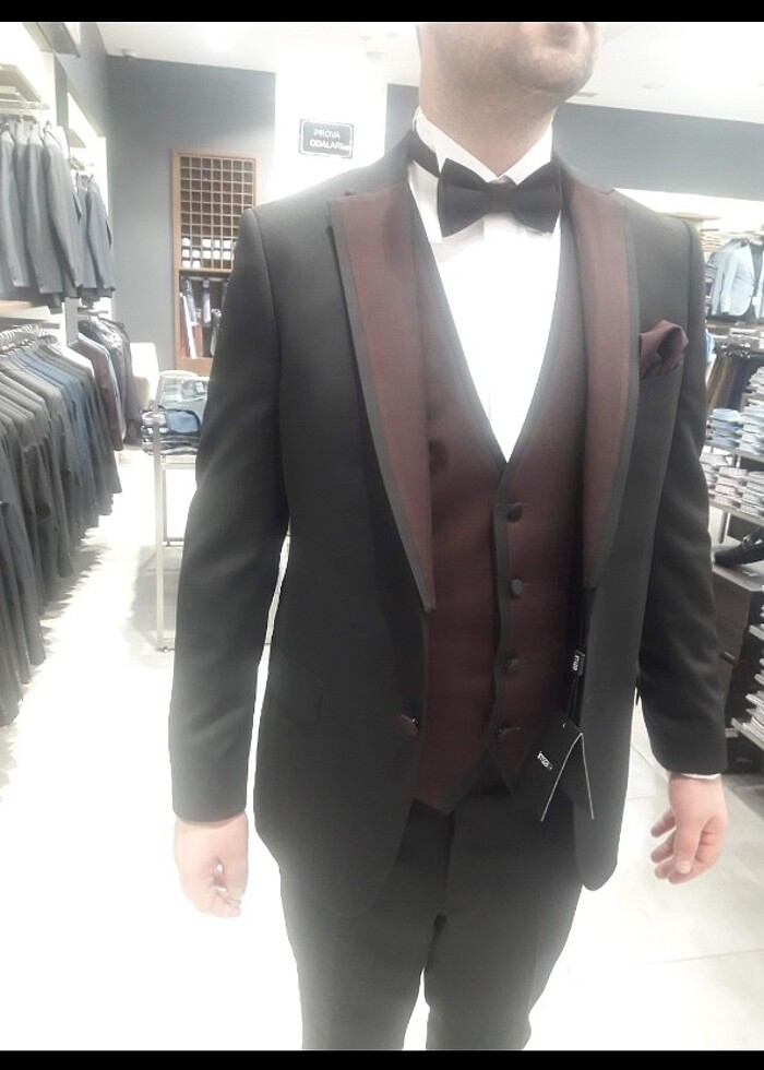 Herhangi bir sorunu yok. Bilgi için mesaj atın. İmza markadır. #damatlık #takım #erkek #papyon #bordo #siyah