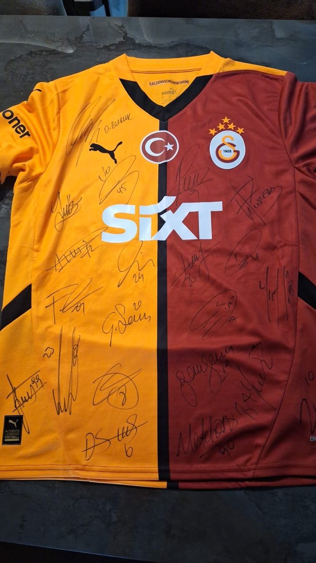 Erkekler için ipeksi kumaştan, bol kesim ve bisiklet yaka kısa kollu, sarı ve bordo renklerde baskılı Galatasaray formasıdır. 'SIXT' logosu ve imzalar mevcuttur.