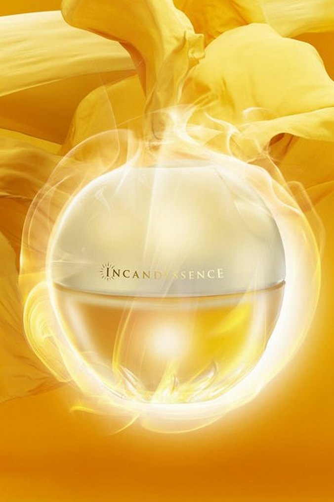 Yuvarlak şişede sıcak ve parlak kokulu Incandessence kadın parfümü. Işıltılı ve davetkar bir koku yayar.