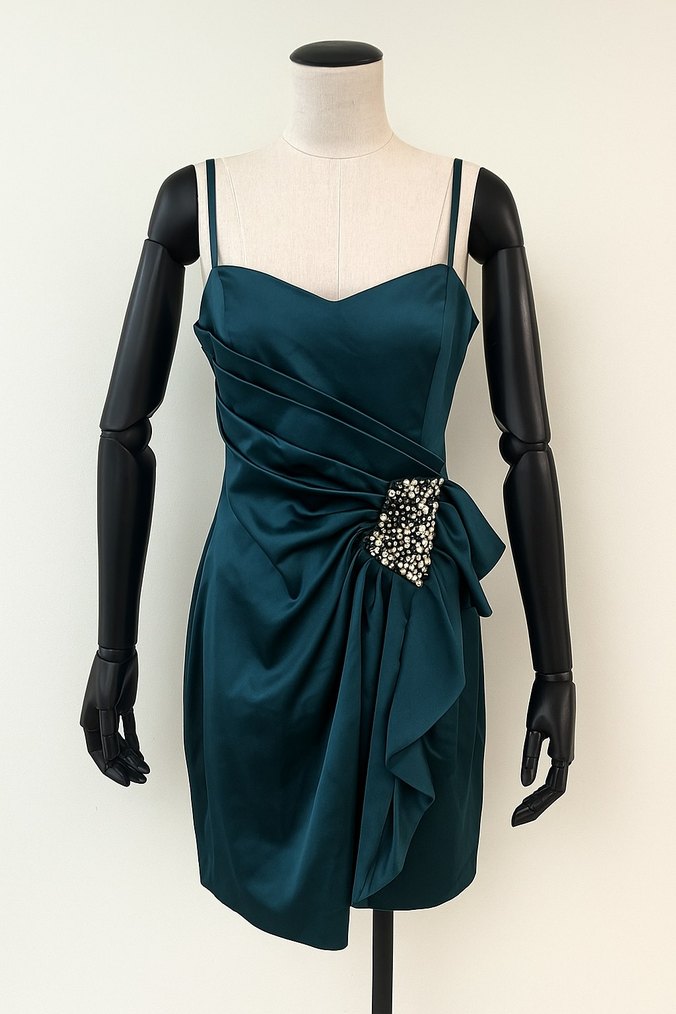 İnce Askılı Drapeli Abiye Elbise