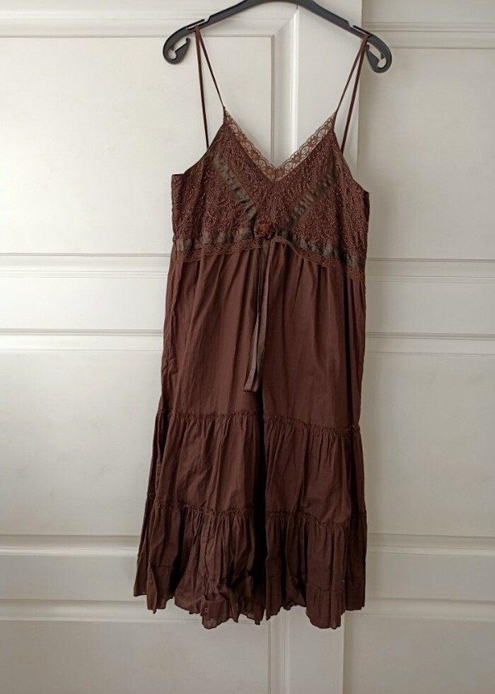Uzun süredir kullanılmıyor. Yırtılma, sökülme yok. Sadece askı ayarlama aparatları kırılmış. Çok uzun olmadığı için ayara gerek kalmıyor genelde. Fakat istenirse tam ayarlanır basitçe tutturulabilir. Özel gün ya da günlük kullanılabilir. Astarlı. Kesinlikle iç göstermez.