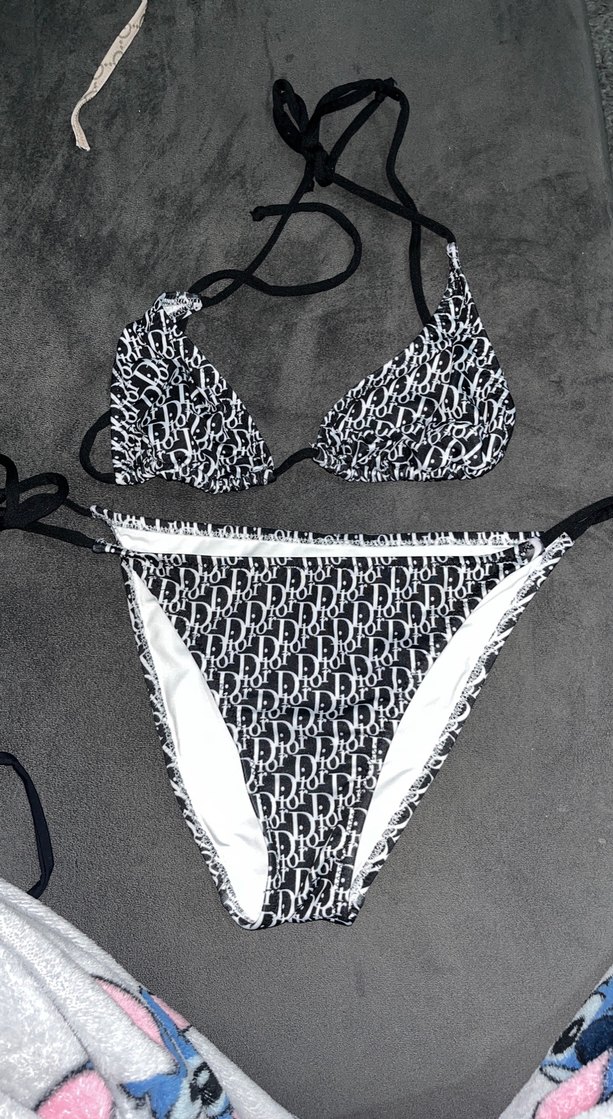 İnce askılı, siyah desenli ve dantelli bu dar kesim kadın bikini takımı, plajda Paris sokak modası havası yaratır. ️