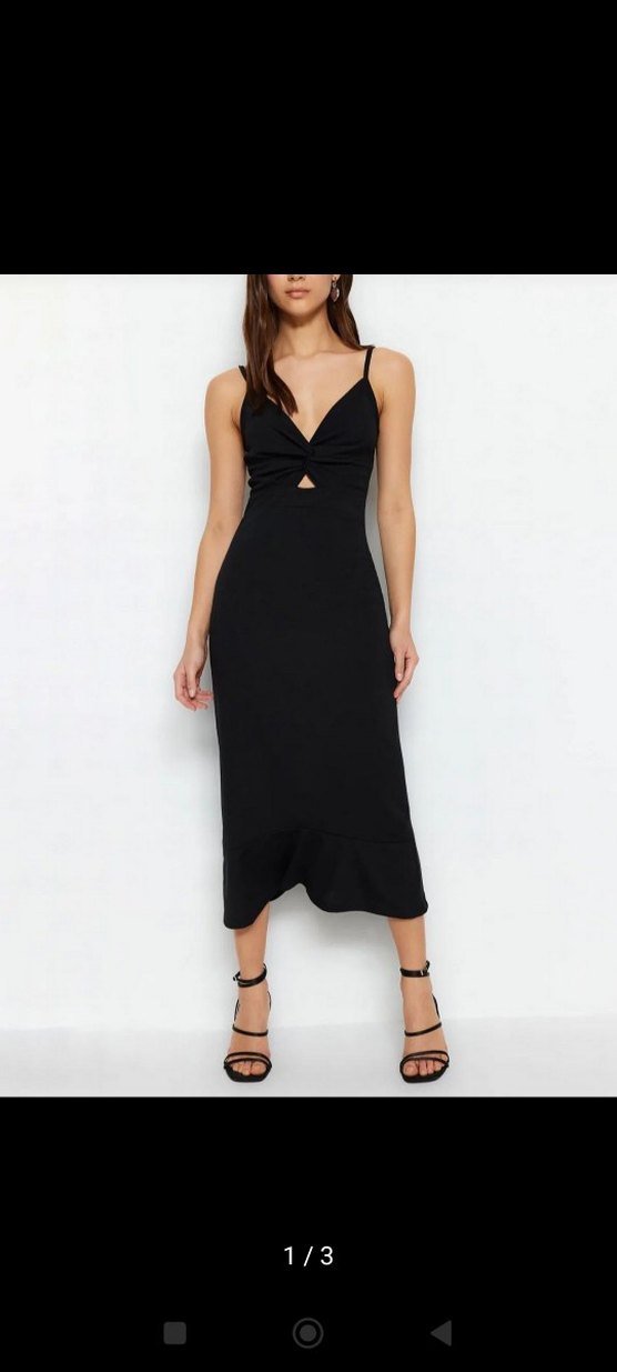 İnce askılı, V yaka ve uzun boylu siyah elbise, ince kesimi ve yırtmaç detayıyla romantik akşamlar için uygundur. Aldım ama hiç kullanma fırsatım olmadı
