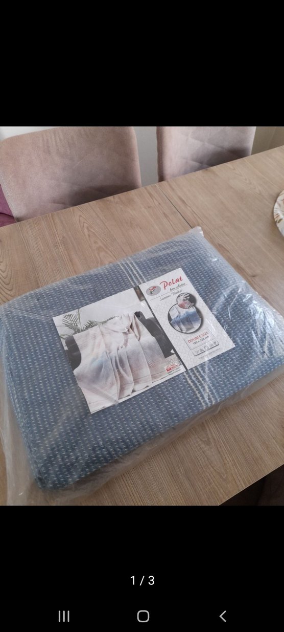 Çift kişilik hiç kullanılmamış ince battaniye. Yatak odanıza modern ve şık bir dokunuş sağlar. Tertemiz.