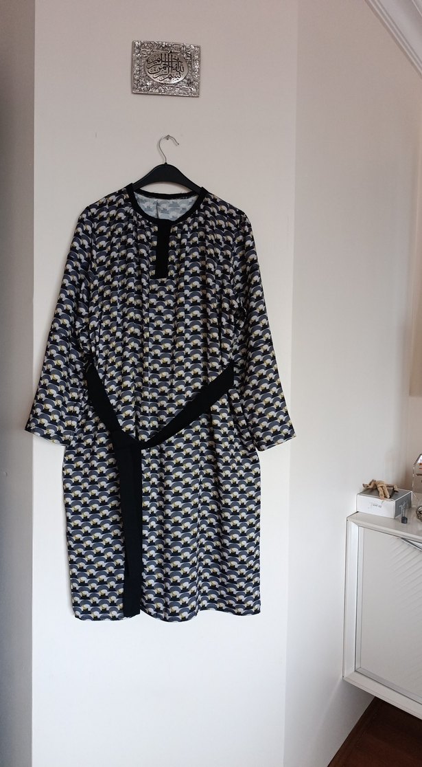 ince ipek saten desenli büzgülü içten çıtçıtlı yuvarlak yaka, kemerli, arkada pileleri olan çok hoş bir tunik rahat kullanım sağlar.