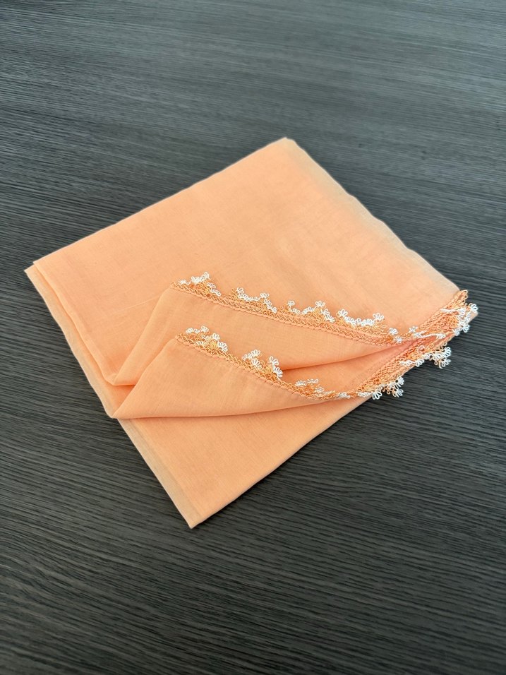 Bej renkte, kenarları ince boncuk işlemeli ipek kadın fular. Yumuşak dokusu ve pastel tonu ile sade ve rahat bir stil sunar.