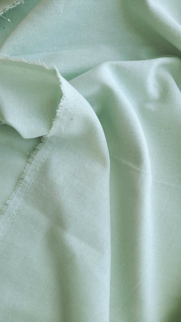 İnce ve yumușacık.Dokusu çok güzel. Saf pamuklu.Gömlek ,bluz,bebek eşyaları vb. dikilebilir.Eni 150 cm , boyu 140 cm.Açık mint yeşili.