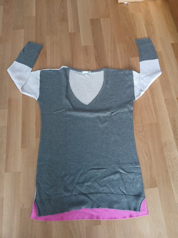 yumuşak dokuma, ince triko, arkası file gibi V yaka uzun kazak