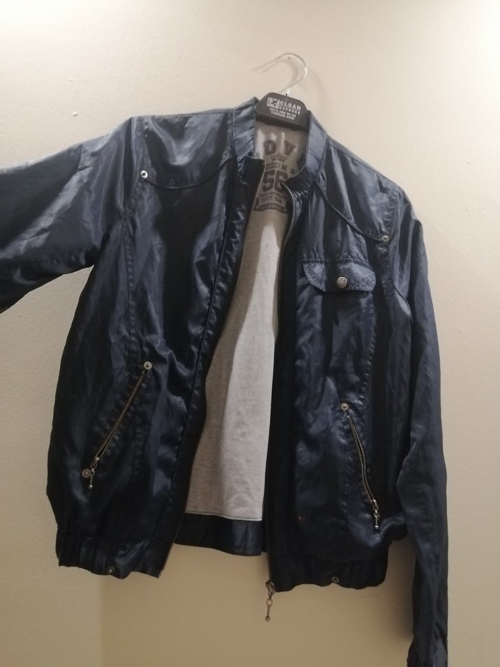 Gevşek kesim, uzun kollu, çıtçıtlı cepli parlak ceket. Günlük kullanım için uygundur. Ben zayıfken kullandım çocuk grubuda tercih edebilir