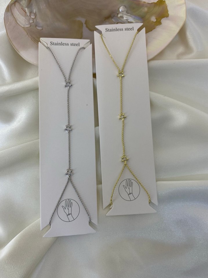 Paslanmaz çelikten yapılmış, küçük nakışlı çiçek detaylı altın ve gümüş renkli ince zincir el zincirleri. Minimalist ve bohem tarzda, günlük kullanım için uygundur.