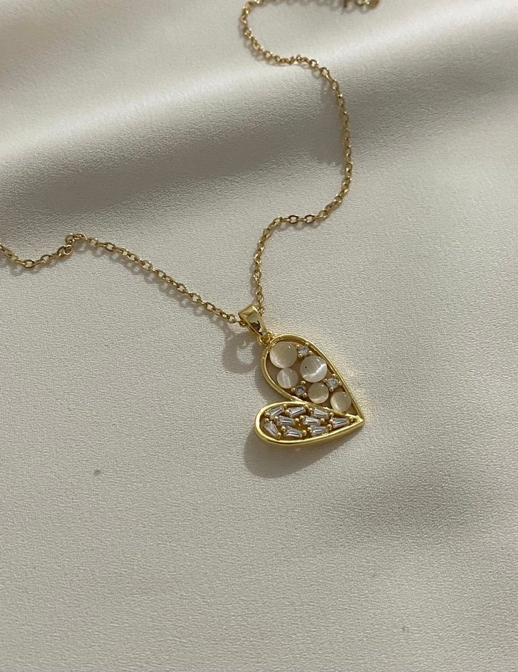 İnce zincirli, nakış desenli altın renk kalp kolye, bohem ve klasik zarafeti bir arada sunar. Romantik anlar için uygun.