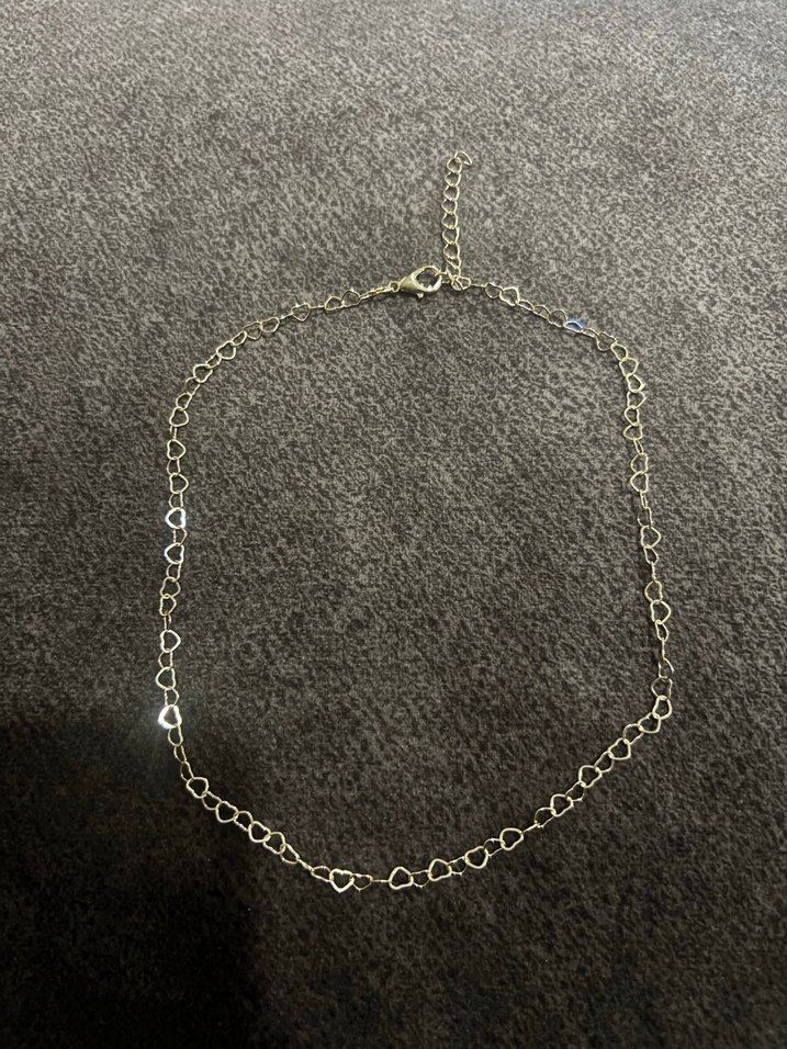 Altın renkli, ince kalp şeklinde zincir detaylı midi uzunlukta minimalist ve bohem tarzda kolye, romantik akşamlar için uygun.