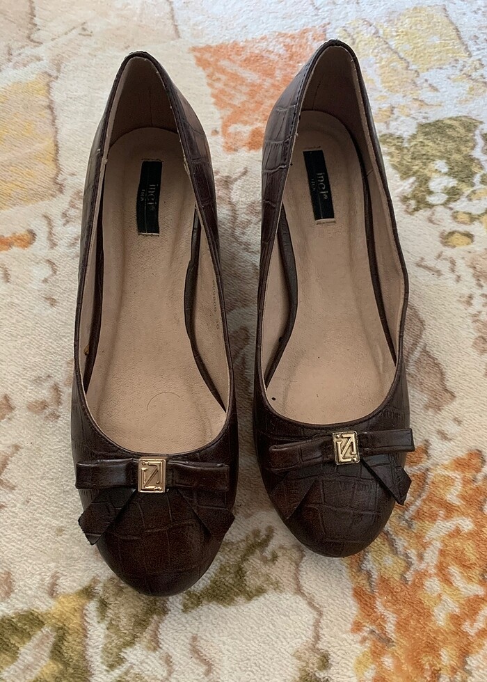 Orjinal marka inci babet/ayakkabı. Hem çok şık hem de aşırı rahat. Koyu kahve renginde, yepyeni hiç yıpranmış değil. Çok az kullanılmış.