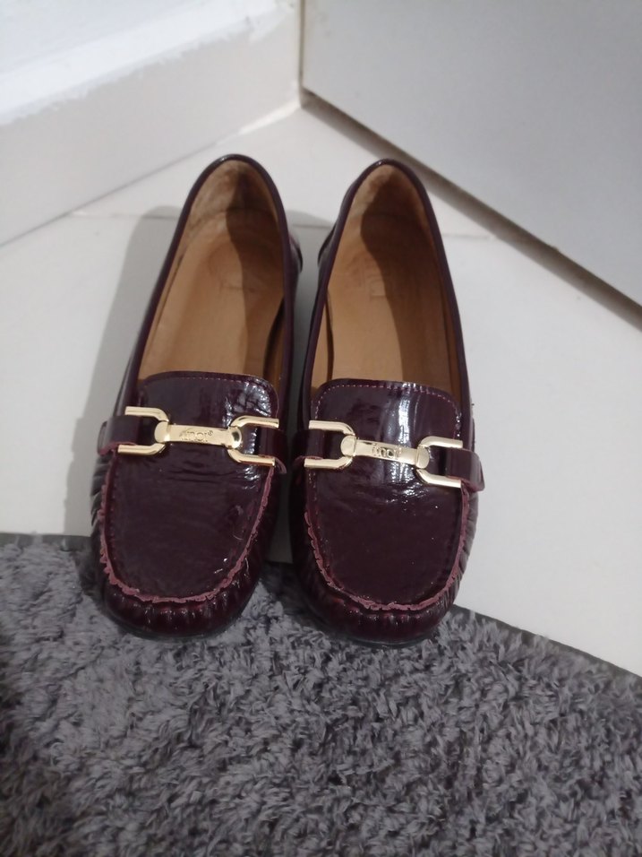 Bordo parlak deri ve yılan derisi desenli, tokalı detaylı blok topuklu klasik kadın babet. 2 kez kullanıldı yumuşak tabanlı ince ayaklar için uygun 37 numara rahat bir ayakkabı