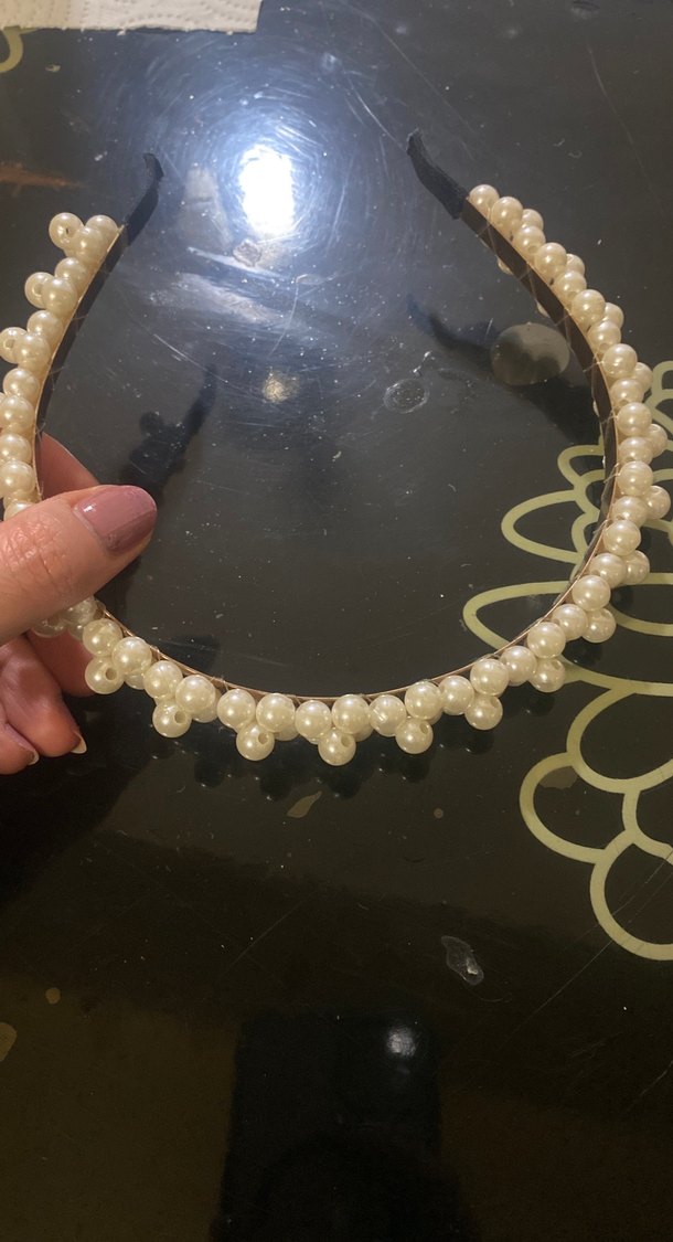 Parlak plastik boncuklarla süslenmiş beyaz taç, vintage ve bohem tarzda klasik şıklık sunar.