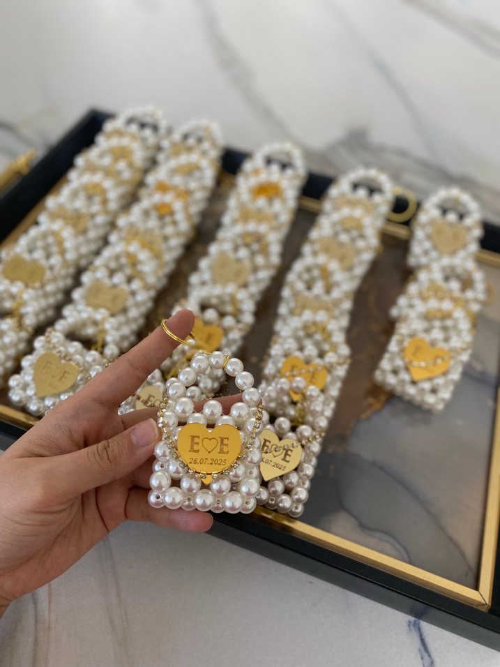 Boncuk işlemeli, altın renkli kadın el zinciri. Kalp figürü ve tarih yazılı detay içerir. Bohem tarzda, düğün ve şık görünümler için uygundur.