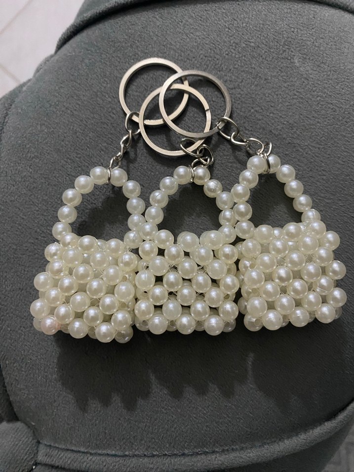 İnci Boncuklu Beyaz Kadın Anahtarlık - Görsel 3