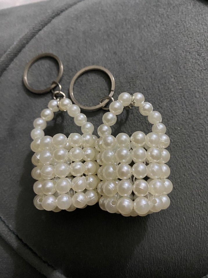 İnci Boncuklu Beyaz Kadın Anahtarlık