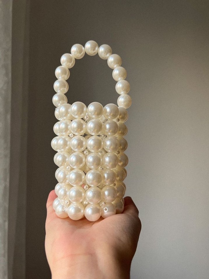 İnci Boncuklu Beyaz Kadın Çanta