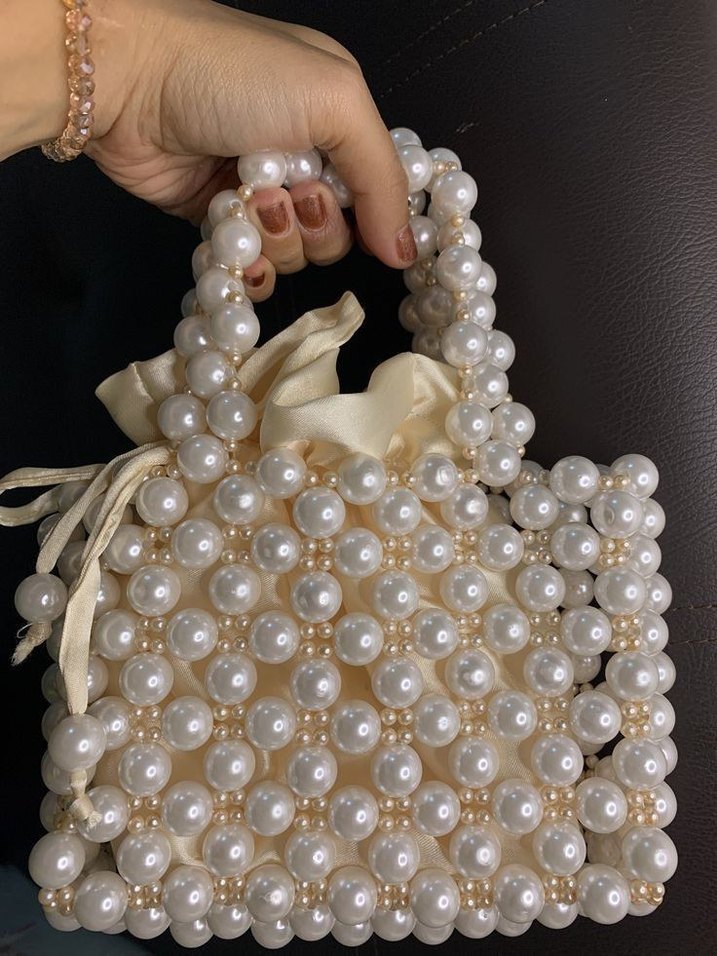 İnci boncuklarla süslenmiş beyaz çanta, nakışlı kumaş iç kısmıyla bohem ve Paris esintili bir tarz sunar. Günlük kullanıma uygun, şık ve öncü bir modeldir.