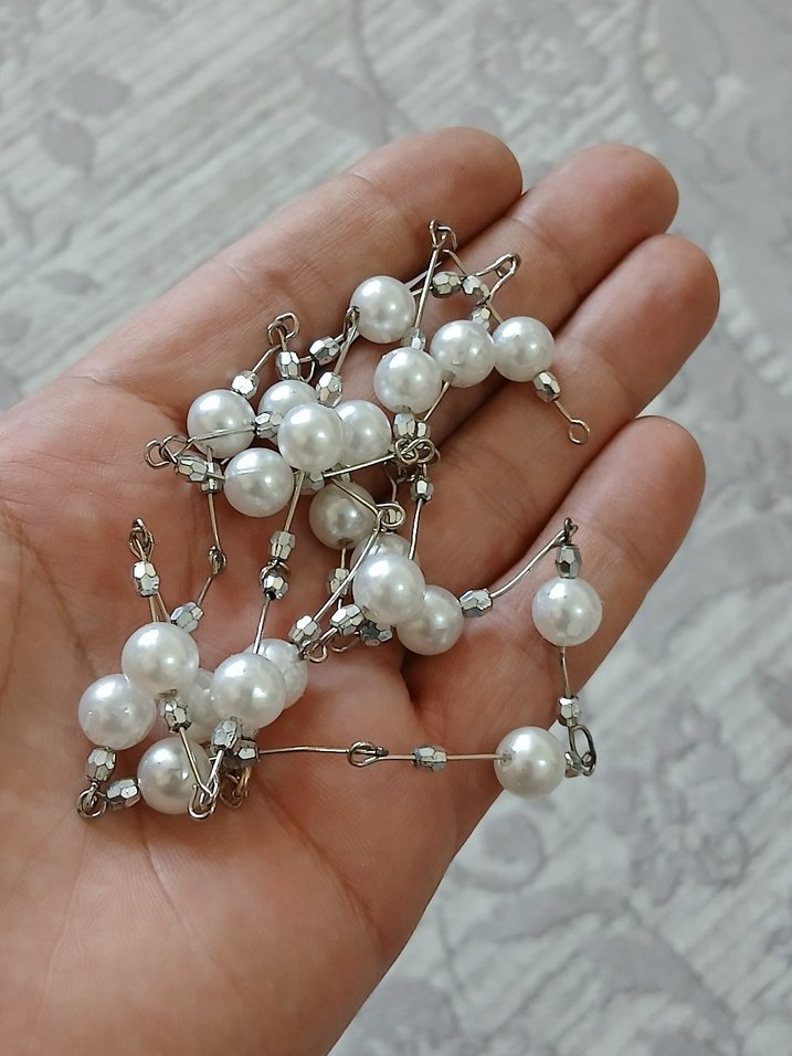 Boncuklu inci detaylı beyaz kadın el zinciri, düğün ve gösterişli etkinlikler için uygundur. Avangart ve moda stillerine uyum sağlar.✨