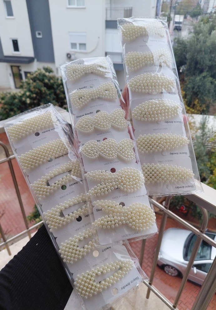 İnci Boncuklu Beyaz Kadın Saç Tokaları