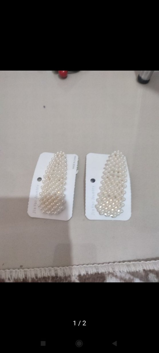 İnci boncuklu plastik malzemeden yapılmış beyaz saç tokası çift seti, sade ve minimalist tarzı yansıtır.