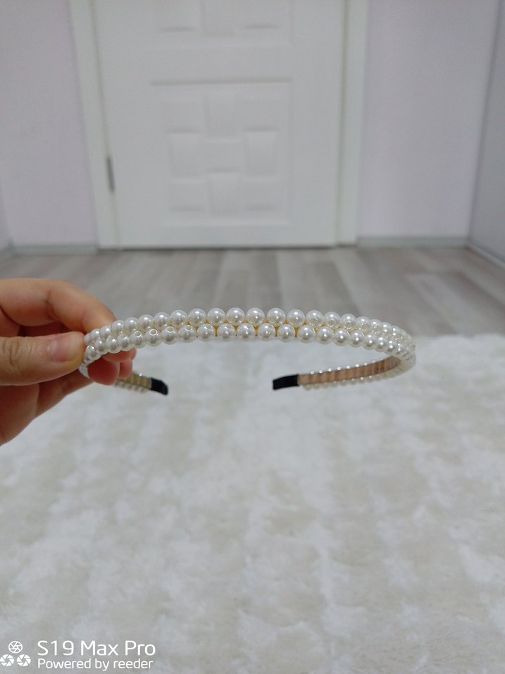 Beyaz plastik boncuklardan yapılmış, minimalist ve modern klasik tarzda hafif ve şık taç.