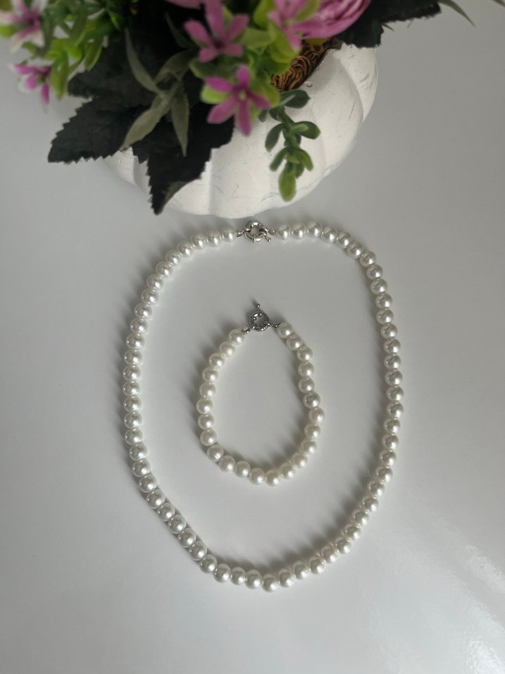 İnci Boncuklu Kolye ve Bileklik Seti